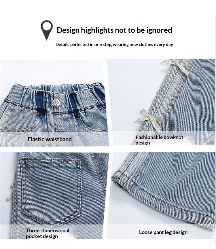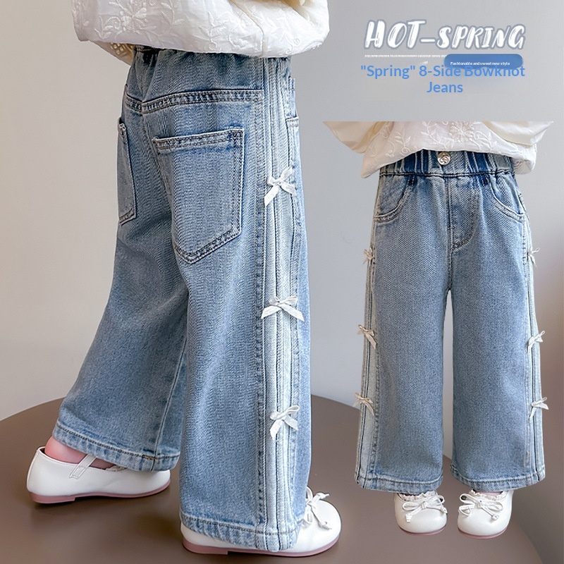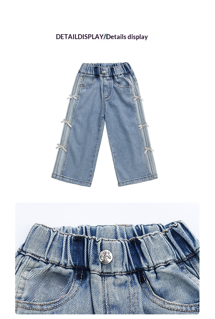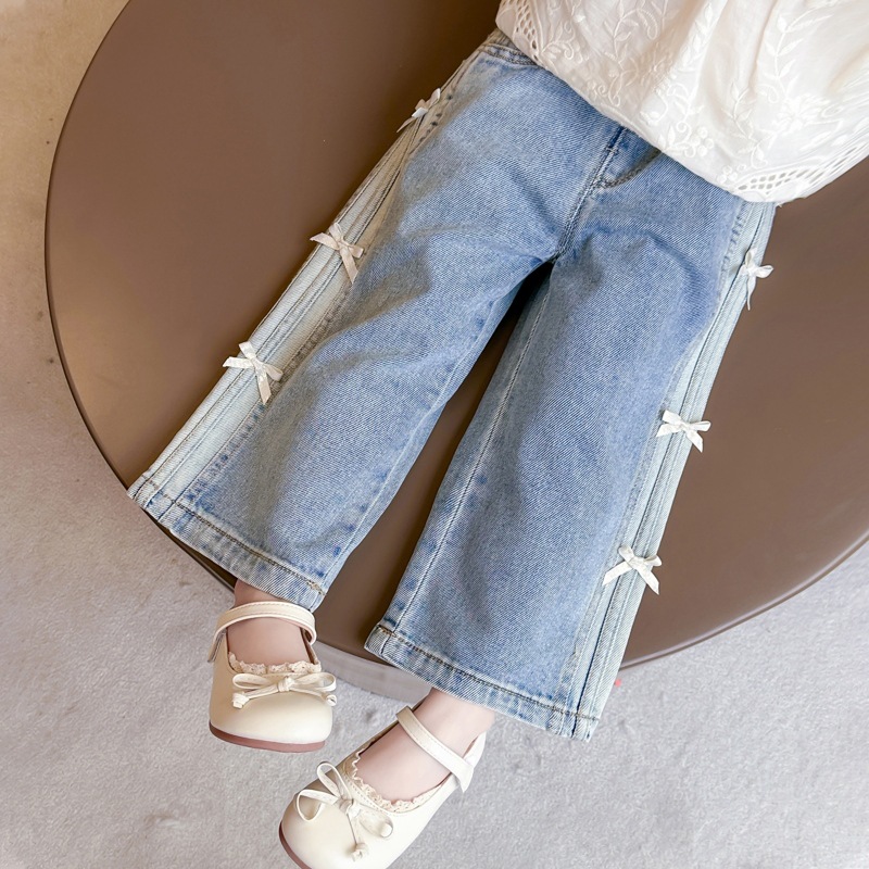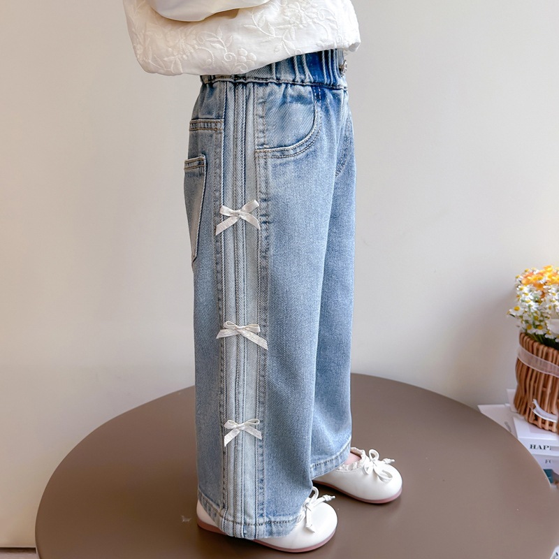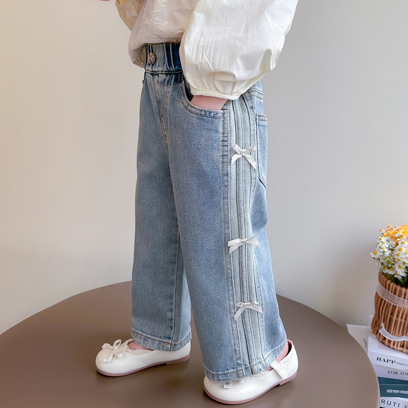 New Autumn Denim Wide-Leg Straight Pants With Bow For Kids