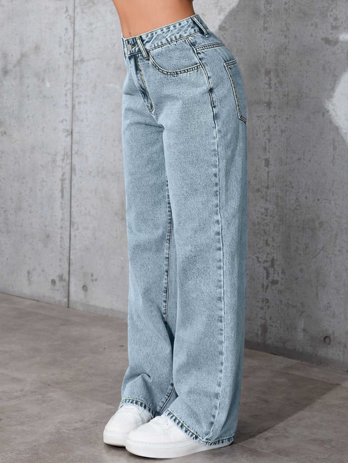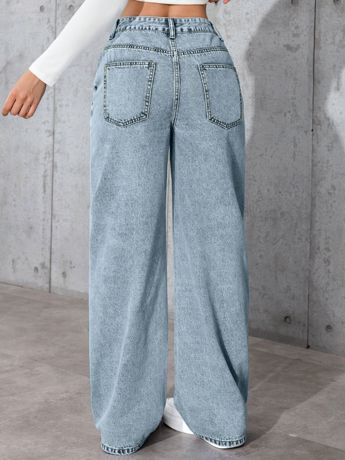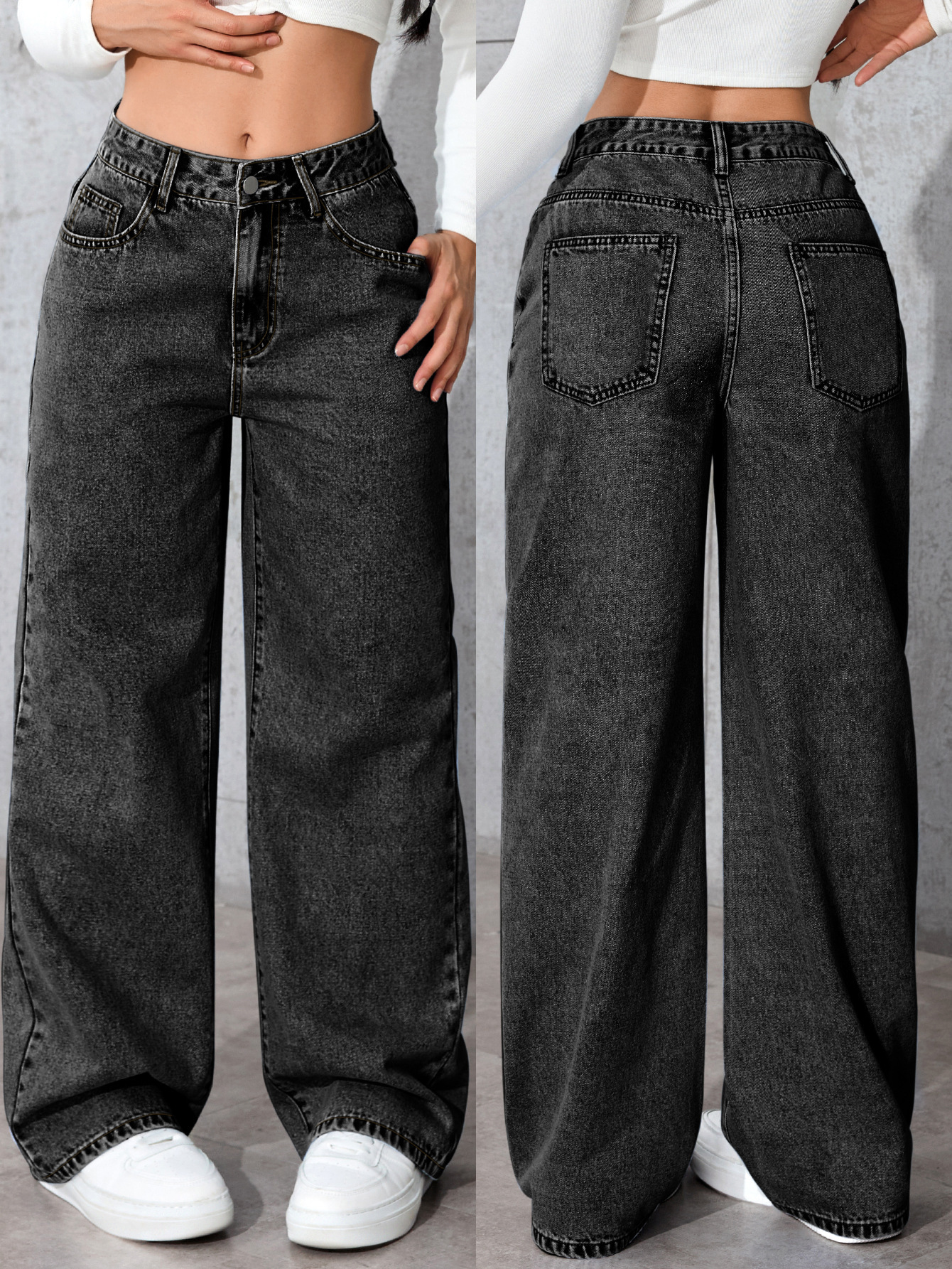 Womens High-waisted Straight-leg, Loose-fitting Casual Pants