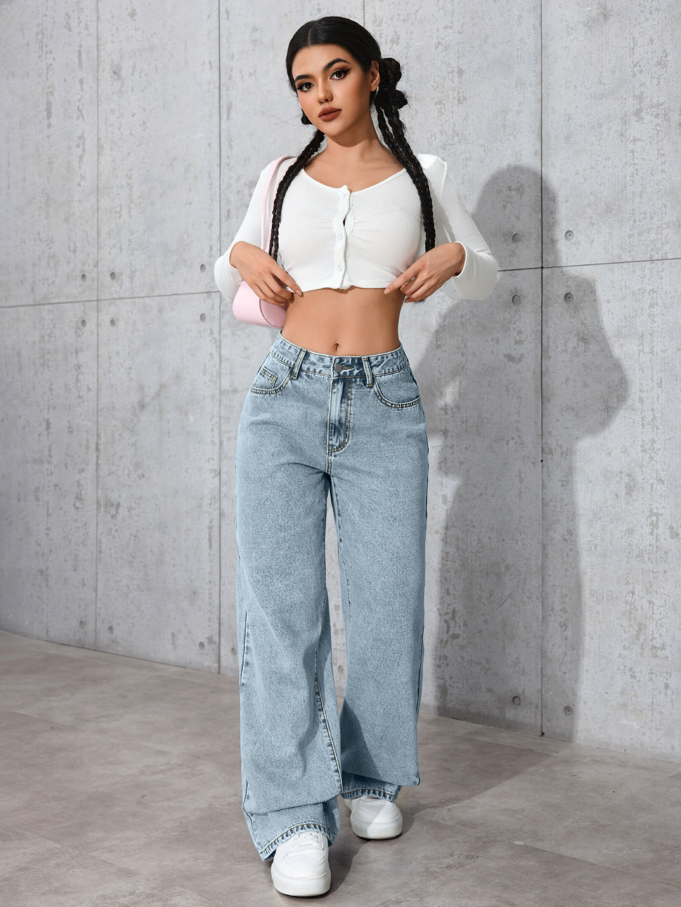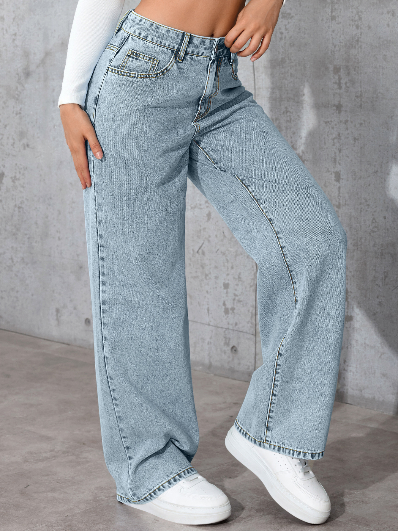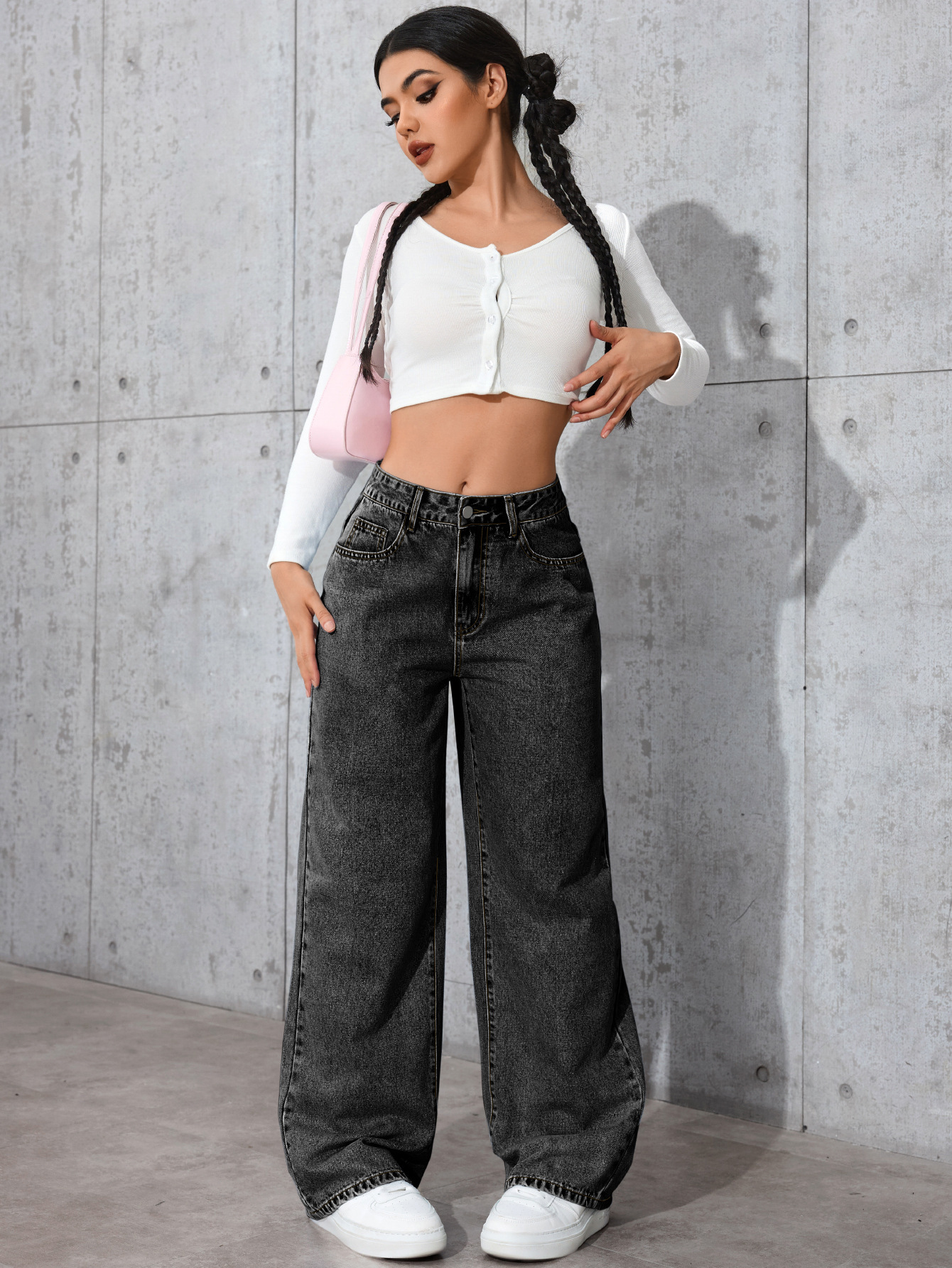 Womens High-waisted Straight-leg, Loose-fitting Casual Pants